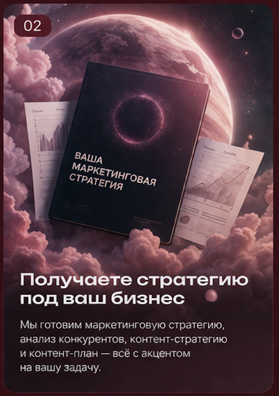 Вы получаете основу: позиционирование, аудиторию, смыслы и логику продвижения